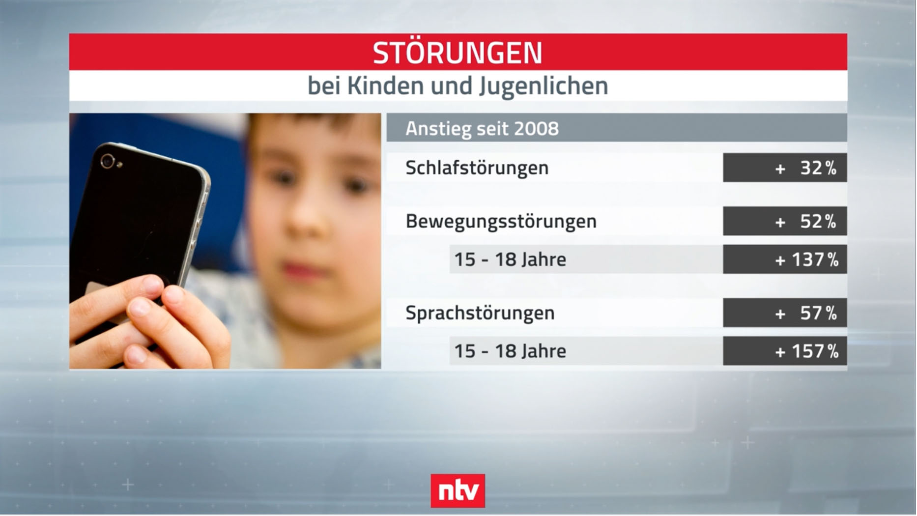 Smartphones können Kinder und Jugendliche krank und süchtig machen, das geht aus einer Auswertung von Krankendaten hervor. Seit der Einführung von Smartphones im Jahr 2008 sind Bewegungs- und Sprachstörungen bei Minderjährigen stark gestiegen.